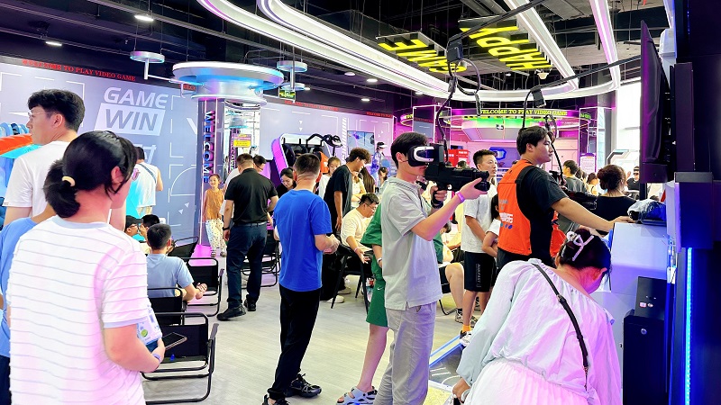 其中,二樓打造的“動(dòng)感競(jìng)技場(chǎng)”,可讓消費(fèi)者體驗(yàn)保齡球精準(zhǔn)碰撞的樂(lè)趣,在“槍王對(duì)決”和“實(shí)彈射擊”中感受腎上腺素飆升,挑戰(zhàn)“滑索”的速度與“射箭”的專(zhuān)注,暢玩Switch2/PS5主機(jī)游戲,或在“炫動(dòng)單車(chē)”“金剛戰(zhàn)士”“巔峰狙擊”中釋放活力,更可在“落日休憩區(qū)”憑欄觀海,動(dòng)靜皆宜;三樓打造了“科技社交匯”,讓消費(fèi)者步入VR館即可開(kāi)啟奇幻冒險(xiǎn),通過(guò)“宇宙一號(hào)”“傘途”“雙人360”“樂(lè)享滑雪”等7大尖端設(shè)備穿梭虛實(shí)之境。同時(shí),“聲控派對(duì)”“開(kāi)放式舞臺(tái)”點(diǎn)燃社交熱情,桌游、麻將、碰碰車(chē)、臺(tái)球、飛鏢、模擬網(wǎng)球、“悅動(dòng)格子”“360°單車(chē)”等豐富選擇滿足不同興趣群體,更有私密“轟趴房”和舒適“太空艙”提供專(zhuān)屬聚會(huì)與休憩空間。